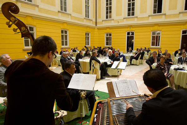 A történelmi múltunkba, építészeti emlékeinkbe is betekintést engedő pazar helyszín illő választás a kultúráért felelős miniszterek vacsorájához. Ezúttal közel száz főre terítettek, s a vendégeket – akárcsak pénteken – jégbehűtött Törley Chardonnay Brut 2006 pezsgő, narancslé és ásványvíz fogadta. A vacsora során Réthelyi Miklós miniszter, Szőcs Géza kulturális államtitkár és Androulla Vassiliou biztos asszony mondott pohárköszöntőt. A pohárköszöntőt követően Gál Helga elnökségi sommelier mutatta be a díszvacsora borait és pálinkáját. A főétel után a Dresch Mihály formáció félórás, a magyar népzenét a jazz világával ötvöző műsort adott.