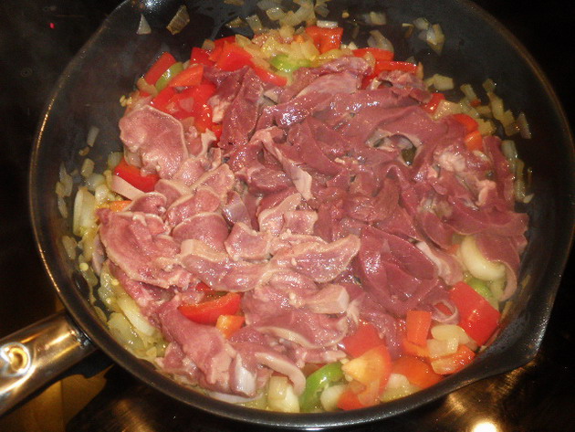 Ekkor a nyelvet fekete borssal, szegfűborssal, babérlevéllel, hagymával, citromkarikával fűszerezett vízben a szívvel együtt előfőzzük, majd tisztítjuk, felvágjuk, és ezek után tesszük a forró serpenyőbe, ahol kevés olajon a nyers májjal együtt pirítjuk, majd hozzáadjuk az fent vázolt hagymás alaphoz. Kevés száraz fehérborral is felengedhetjük, de a főzővizet is használhatjuk, és az ételt készrefőzzük.