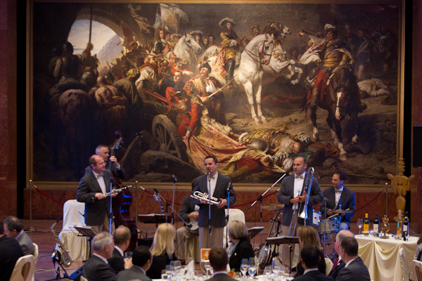 - A vacsora vendégeinek a Hot Jazz Band adott műsort és a vacsora alatt is ők szolgáltattak visszafogott zenét. A Hot Jazz Band tolmácsolásában a húszas, harmincas, negyvenes évek, a korai jazz, a swing és a dixieland kelt életre