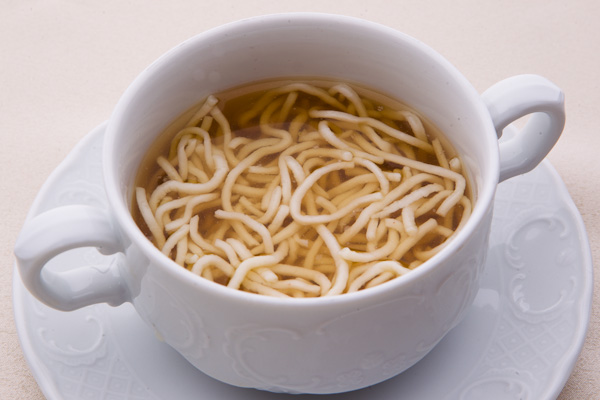 Az est levese hagyományos húsleves (bouillon) marhacsontból és marhanyakból főzve. Ha van étel, amelynél a jó alapanyag előnyei mindenekfelett megmutatkoznak, az a húsleves, s a húslevesek között is első helyen a marhahúsleves. Ilyesfajta leveseket évezredek óta főznek mindenfelé, s kultusza van hazánkban is, leginkább az ünnepek környékén, lakodalmakban. Az borrégió területén is legeltették a marhacsordákat és ünnepnapkor marhahúsleves is készült.