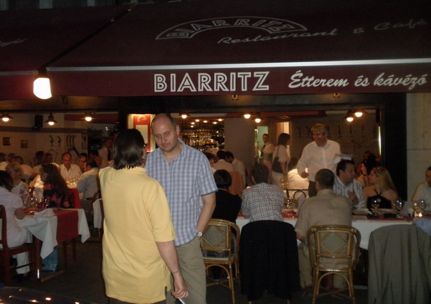 A képen Szepsy István és Berkes Gyula állnak a jó időben utcára nyitott, szellős, levegős Biarritz előtt 2011. május 26-án, a Szepsy István Boresten.)