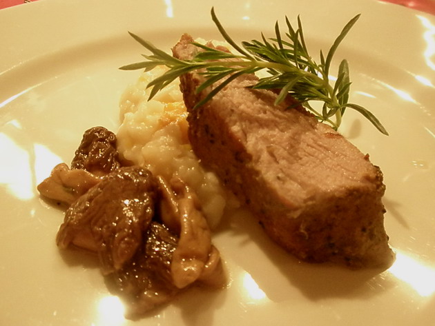 - Az étel: Sertés szűzpecsenye őszibarackos rizottóval, kucsmagombával