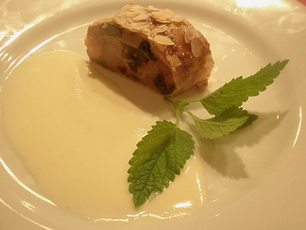 Az aszalt gyümölcsök koncentrált sokszínűsége és változatossága, a textúrák, a sodó együttesen avatta remek, a borhoz illő desszertté a rétest.