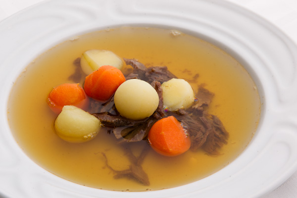 2) A leves: Ökörpofa húsleves zöldséggolyókkal