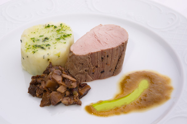 Az egészben hagyott mangalica szűzpecsenyét 200°C hőmérsékleten 5 percig kérgesítették, majd 50°C hőmérsékleten 15 percig „pihentették”. A így készített, sóval, borssal fűszerezett húshoz mangalicazsírral készült, újhagyma zöldjével ízesített burgonya köret és pirított erdei gomba is társult. A pirított gombához vargányát és kucsmagombát használtak és sóval, borssal, rozmaringgal és kakukkfűvel fűszerezték. Az ételhez zelleres újkáposzta mártást is komponált a séf. A mártáshoz az újkáposztát lereszelték, sóval, borssal, köménymaggal, fokhagymával ízesítették és olajon, cukorral párolták. Az így előkészített káposztát zeller redukcióval öntötték fel és mártás selymességűre pépesítették.