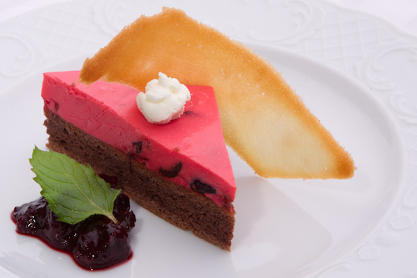 A borhoz komponált desszertnél a séf továbbra is tartotta magát a táj természetesen előforduló alapanyagainak felhasználásához. A desszert: Cseresznyetorta szabolcsi meggy redukcióval A sütemény alapja kakaós piskótalap, volt, amelyre – a borral való harmóniák okán is – baracklekvárt kentek vékonyan. Erre zselatinnal megkötött cseresznyekrém került cseresznyedarabokkal, s kevés befőzött sárgabarack ízesítéssel. A torta mellé friss meggyredukciót helyeztek aszalt meggyel.