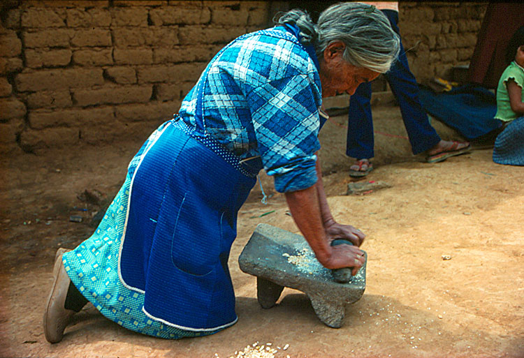 A tortillahoz a nixtamalizáción átesett kukoricát hagyományosan az ősi őrlőkövön (metate) őrlik meg, ahogy a képen is látható. A tésztához sót és annyi langyos vizet adnak, hogy lágy, a ragadósságát elvesztett tésztát kapjanak. Rövid pihentetés után ebből sütik a tortillat és más „nixtamal” alapú ételeket.