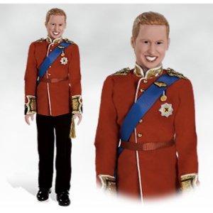 Hogy az emancipáció maradéktalanul kiteljesedhessék a herceg 18 colos méretű, demokratikusan, század pontossággal ugyanannyiba kerülő (99,97 USD) babája is megvásárolható. Ahogy a termékaujánló mondja: „A Kate Middleton menyasszonyi baba tökéletes párja.” A Paradise Galleries mester szobrásza formázta ugyanabból a kiváló minőségű műanyagból, akárcsak aráját. Szép darab mindegyik, de a sort nem folytatom, pedig akadna még ereklye bőven, s néhány ezer forintért már lehet belőle nekünk is otthon.