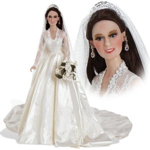 Az igazi kedvencem azonban a Kate Middleton menyasszonyi baba, 17 colos méretben vinylből készítve, ami már meg is teremti a kapcsolatot a bloggal, mivel a vinyl a latin vinum = „bor” szóval tart rokonságot. Akinek mindez kevés, külön beruházás keretében akár muszlim esküvői ruhát is készíttethet, ahogy ajánlják. A baba mindössze 99,97 USD, ami tényleg jutányos, ha a szerény kék ruhába öltöztetett Kate Middleton eljegyzési baba árát (195 USD) nézzük. A hajadon baba ára duplája a már eljegyzettnek, ami teljesen rendjén való árképzés.