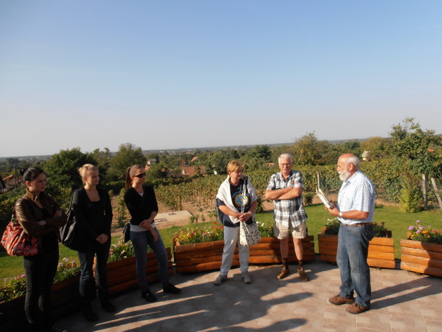 A szüret napjának reggelén a pestszentlőrinci Gombás Étteremnél gyülekeztünk. Innen személyautókkal ment a húszfőnyi csapat Monorra. Első állomásként a hegybíró tartott rövid előadást az ország legnagyobb pincefalujáról, ahol – ki gondolta volna? – közel 900 pince található.