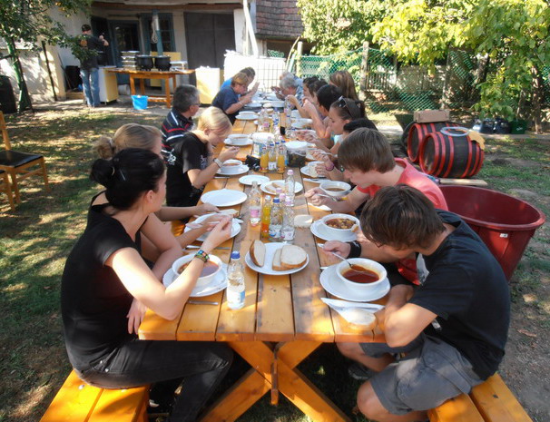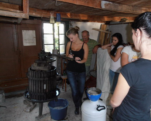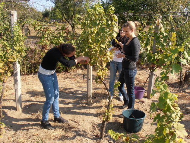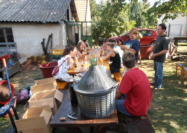 A szüret Gombás András monori szőlőjében volt, ahol éppen az osztály kedvéért hagyták a szőlőn a mézédes fürtöket, amiket aztán ők szorgalmasan le is szedhettek.