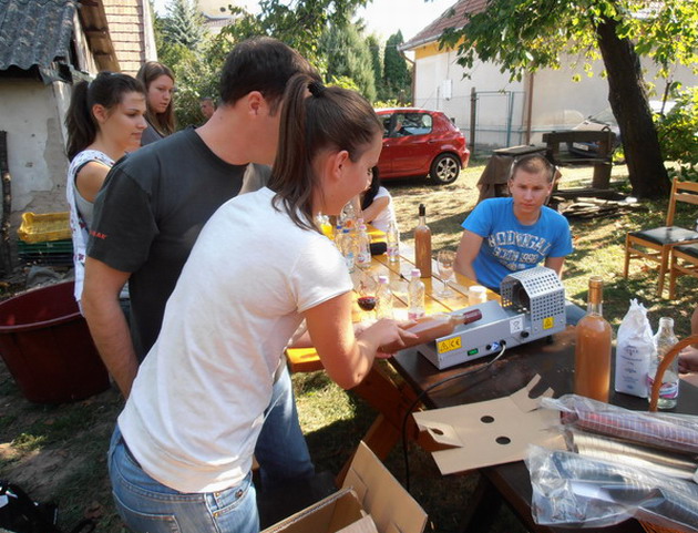 A Monoron leszedett szőlővel Úriba, mentünk. A szőlő préselése, a must töltése, a palack dugózása, kapszulázása is itt esett meg, de előtte a Gombás Étteremben készített omlós csülökkel, sült csirkemellel, hozzá zöldséges rizzsel, átlagon felül ízletes és gazdag, bőven mért gulyáslevessel, rétessel vendégelték meg a 12. „nyek” osztály szüretelő tagjait.