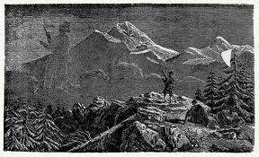 „Egyszerre csak saját árnyékomat láttam meg hatalmas sárga, ragyogó dicsfénytől övezve. Ahogy óriási arányokban megnagyobbodva a ködből kibukkanok.”.