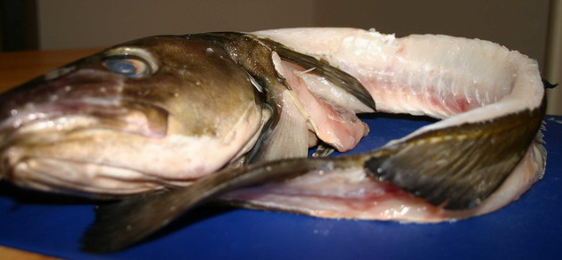 Mivel a hollandusok kereskedő vénája már születés előtt lüktet, így ezt a kb 60 cm-es halat fél euróért nekem adta. Gyorsan vettem is tőle még vagy fél kiló különféle halfilét is, hogy mindenki jól érezze magát a csereügylet végén.