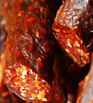Csabaiak elbeszéléséből ugy tudom, hogy erre a területre a szlovákok hozták be a kolbászt. Utána terjedt el, s izét itt formálták át a jelenlegire.