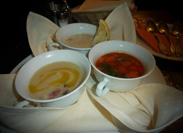 A „Tormás burgonyakrémleves füstölt csülökkel” Lajsz András ajánlása. (520 Ft). Kellemes tormásság, remek, puha csülök, füstös, olívás „téli” íz jellemzi, de közben megmarad könnyednek. kiváló hideg időkre szóló, szezonális leves.