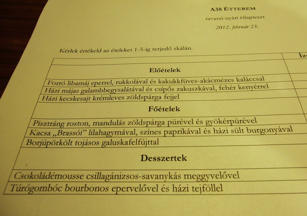 A TAVASZ minden bizonnyal eljön idén is, sőt, a nyárra is bizton számíthatunk, ezért aztán egy olyan trendi helyen, mint a Lonely Planet útikalauz és a thai Singha sör közös versenyén „A világ legjobb bárja” címet elnyert A38, illik új étlappal megjelenni. (Amúgy másutt is.) Zeibig Márton meghívott, nézném meg az étlapjukra szánt ételeket és mondjam is el a véleményem. Szívesen mentem, és el is mondtam. A bal oldali képen az A38 séfje, Halász István, aki többek között Bereznay Tamástól tanult.
