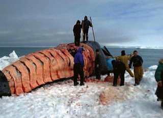 A GRÖNLANDI BÁLNA (Balaena mysticetus) régóta szerepel már Alaszka őslakóinak étrendjén. Lehet ugyan kárhoztatni őket, azonban aligha várhatjuk el tőlük, hogy búzát termesszenek, narancsfákat ültessenek és a bálnazsír helyett inkább az alaszkai olajfák extra szűz olívaolajával főzzenek. Ők a tökéletes húsevők, vagy legalábbis valamikor még azok voltak. Időnként elejthetnek egy-egy bálnát, ami érthetően nagy eseménynek számít.