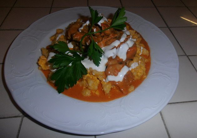 Miközben Evelina a pincét is bemutatta, éppen egy igen szimpatikus kinézetű paprikást tálaltak.