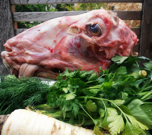 A BIRKAFEJ sokak számára szokatlan és bizarr, ám elegendő lenne a sertésfejre gondolnunk, amely már nem vált ki hasonló érzéseket, s rájönnénk, csupán arról van szó, hogy birkafej, vagy a bárányfej sokkal ritkábban fordul elő az alapanyagaink között, mint a megszokott sertésfej, ezért aztán az idegenkedés is gyakoribb. A csarnokban, Kónya Györgynél bárány és birkafejet vettem, kaptam. Ebből készítettem egyszerű, ám nagyszerű ételt.