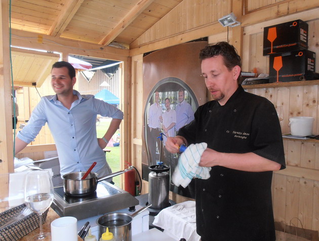 A GOURMET FESZTIVÁL 2012 a Millenárison nagyszerű időjárás mellett zajlik. A csúcsgasztronómia világának ez a fesztiválja láthatóan vegyes megítélést vált ki, legalábbis, ami az árakat illeti, ám az itt megjelenő árak az éttermek árainak tükörképei, amihez a beszerzett alapanyagok minőségarányos árai is hozzájárulnak. A százszámra szervezett fesztiválok sorában ez a kevesek számára napi hozzáférhetőségű fine dining világába adhat betekintést, tapasztalatom szerint 500-1500 Ft/adag árakon. A boroknál azonban akár a 3000 Ft/dl is előfordulhat, mint a csúcsborok közé sorolódó Bock, Capelle Cuvée esetében.