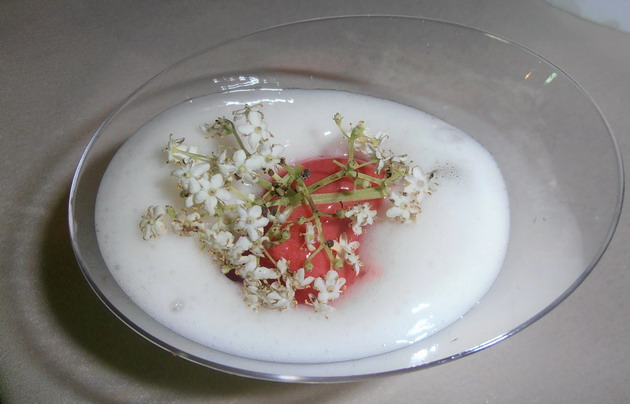 Wolf András (Salon Étterem, New York Palace), Amit kóstoltam: Egresleves rozmaringos friss kecskesajttal, Kacsasült káposztás cvekedlivel, Eperbodza, Rebarbaraszörp
