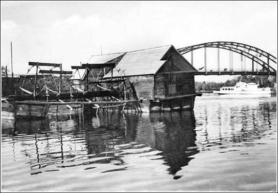 Mit ír a tudós szerző a sárközi vízimolnárok boldogságos életéről? – ám itt keveset találtam. Egy ábrát viszont igen: egy régi oppidum, Dunaföldvár 1836-os látképét; a város Duna-szabályozás előtti képén jól észlelhető a folyón szolgáló, hatalmas vízikerékkel dolgozó vízimalmok hosszú sora. Miként a szerző meg is jegyzi, hogy a Duna