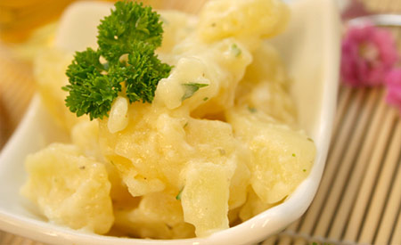 A krumplisaláta felénk kizárólag héjában főtt krumplival képzelhető el. Gyakori, hogy hgyományos (cukros-ecetes) salátalében kínálják – a bors ilyenkor is kötelező.