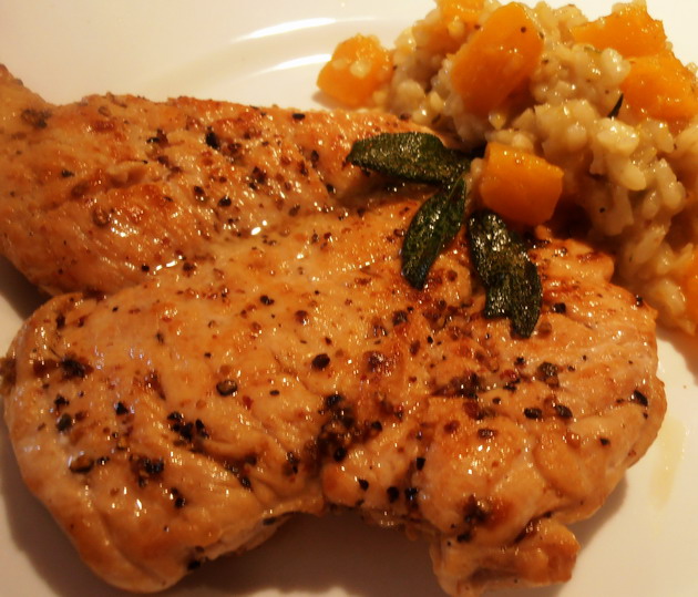 Sütőtökös, zsályás rizottó