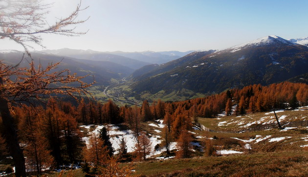 Az októberi „Goldener Herbst” szikrázó napsütésében már csak elszórt hófoltok emlékeztetnek az alig egy héttel korábbi havazásra, amikor a hegyre vezető meredek utat is le kellett zárni az 50 centiméternyi frissen hullott hó súlya alatt kidőlt fenyőfák miatt.