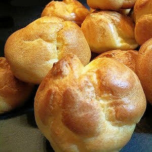 A sütőt melegítsük elő 190-200°C hőmérsékletűre. A tepsit olajjal vékonyan kenjük meg. A tésztából kanalazzunk kis adagokat, egymástól 3 cm távolságra, vagy habzsákkal formázzuk. A tészta tetejét a maradék felvert tojással kenjük meg. Süssük 20-25 percig, vagy amíg aranybarna nem lesz. (Mielőtt kivennénk, ellenőrizzük, hogy a belseje kellően kiszáradt-e. Ha nem száradt ki, összeeshet.)