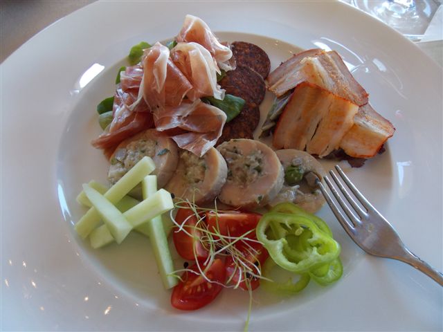 A kóstolón az étlap új ételeiből egy „tapas válogatás” érkezett. Tizenegy innovatív, reményteljes étellel ismerkedhettünk meg. (A képen látható adagok kóstolóadagok.)
