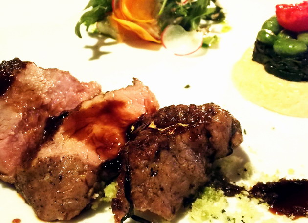 - Főétel: Borjú hátszín zöldfűszeres kéregben parmezános mártással,baby rukkola salátával