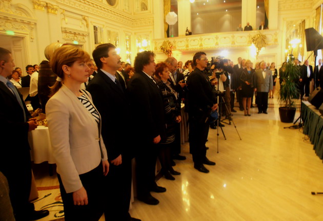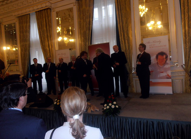 A kóstolás és a díjátadó után a bálteremből átmentünk a díszesen terített asztalokkal fogadó ünnepi terembe, ahol az ebéd kezdetére várva, tovább folyt a beszélgetés.