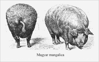 A MANGALICA válla erős, fara csapott, végtagjai finom csontozatúak, torokjárata széles. Szépen göndörödő, többnyire szőke gyapjú takarja, akár egy birkát, pedig sertés ez, a javából. Az Eurázsiában mindenfelé elterjedt vaddisznónak a tudós svéd, Carl Linnaeus adta a latin Sus scrofa nevet. Ebből lett a vaddisznó alfajának, a háziasított disznónak a neve, a Sus scrofa domesticus. A háziasítás helyét illetően a források abban többnyire megegyeznek, hogy mindez már több mint tízezer esztendővel ezelőtt, a Közel-Keleten,