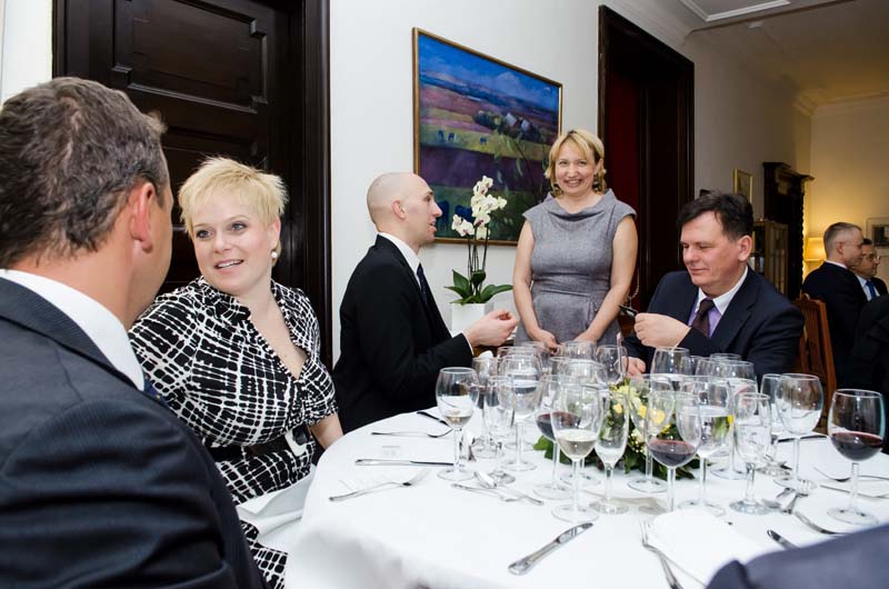 A vacsorára 2012. február 12-én este került sor. Sűrű havazásban érkeztem. A taxi a követségi rezidencia kertjében a bejáratig vitt. Egymást érték az érkező autók és vendégek, köztük számos ismerős, mint Wiszkidenszky András (DiningGuide), Németh Ágnes (VinCE Magazin), Ördögh Bálint (GoodFood), Bíró Lajos (Bock Bistro), Harmath Csaba és Herczeg Ágnes, a kiváló borszakértő.