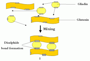 Amikor a liszthez vizet adunk, a vízmolekulák a gliadin és glutenin nevű fehérjékkel glutént képeznek. Ezek a fehérjemolekulák meglehetős összevisszaságban voltak mindezidáig, azonban a mechanikai energia, a dagasztás hatására láncokká rendeződnek, miközben rugalmasságuk, erősségük egyre nő. A folyamat során, ahogy az ábra is mutatja, a glutenin láncokat a fehérjékben lévő kénatomok között létrejövő erős diszulfid-kötések kapcsolják össze. Ez a gumiszerű glutén váz – mint a léggömb gumija – biztosítja majd, hogy kelesztett kenyérnél az élesztőgombák termelte széndioxid, valamint az ugyancsak termelődő alkohol-, és a tésztához adott víz gőze lyukacsokat képezhessen a tésztában, és ne illanjon el. Előfordul, hogy a tésztát többször is újrakelesztjük, amivel sokkal kifejezettebb gluténvázat kaphatunk. Emellett a kelesztéshez használt gombák, baktériumok anyagcseretermékei is új ízeket adnak a tésztának.