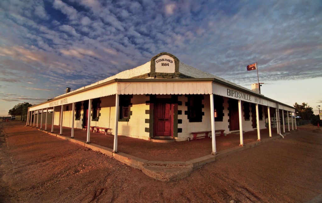 A 110 lakosú Birdsvill, homokdűnék között, a Simpson sivatag szélén, az ausztrál vadon szívében, a Diamantina folyónál áll. Ez a Wangkangurru-Yarluyandi őslakosok földje. A kocsma fala visszavisz a múltba. Régi sapkák, sörös plakátok – a legrégebbi még 1884-ből származik. A legtöbb látogató amatőr off-road versenyző. A szeptemberi versenyekre érkeznek. A közeli repülő leszállópálya miatt a többi hónapokban is akad látogató. A buciba töltött báránypörkölt sivatagi paradicsommal és szezonális zöldekkel különösen jól készül. Hozzá Queensland XXXX sört ajánlunk.