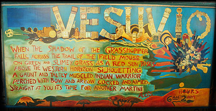 A North Beach túloldalán, a hírhedt City Lights Bookstore-ral szemben áll az 1948-ban alapított bohémkocsma, a jazz, a költészet, a művészet élő emlékműve. Színes közönsége a művészektől, a sakkjátékosokig, taxisofőrökig, táncosnőkig, európai turistákig, életművészekig terjed. 1955. október 17-én az amerikai beat nemzedék és pszichedelikus mozgalom meghatározó alakja, Neal Cassidy állt meg itt, hogy ettől kezdődően a Vesuvio már soha ne legyen az, ami korábban volt. Ez lett Jack Kerouac egyik törzshelye, aki Neal Cassidy alakját az Úton című regényében örökítette meg. A kocsmában a legendák, Kerouac, Dylan Thomas, Ginsberg fotói. 1960 egy mámoros éjszakáján innen telefonálgatott sikertelenül Kerouac, hogy Henry Millert, az írót, átcsábítsa a Vesuvioba. Ihatunk itt környezettudatosan készített öko-bort, sört, vodkát újrahasznosított palackból, együtt az öko-barát, elvarázsolt törzsvendégekkel.