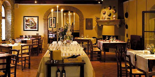 A közeli Relais & Chateaux Il Falconieri & Spa tulajdonosai, Silvia and Riccardo Baracchi, akik a szállodához tartozó 1 Michelin csillagos étteremmel büszkélkedhetnek, valamint a komplexum területén szőlőt művelnek és borászatot is működtetnek, továbbá saját ültetvényük terméséből olívaolajat is készítenek, ezúttal a másik családi vállalkozásukat, az említett panziót is bemutatták a több országot képviselő látogatóknak, akiknek egyedi fogásokból állították össze a vacsorát. Ez az ízlésesen berendezett, a vidéki kúriák nagypolgári enteriőrjét sugárzó szalonban felszolgált saját készítésű pezsgővel (Brut Rosé 2010 – Sangiovese Millesimato) vette kezdetét úgy , hogy üvegjének tetejét karddal csapta le vendéglátónk. A nem kevésbé barátságos étteremben és kellően ráhangolódva az estére, az alábbi menükártya szerint követték egymást a helyi alapanyagokra épített ételkreációk: