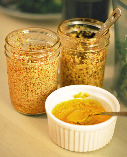 A 14. század végén (1392-1394) íródott francia „La Menagier de Paris” szerint: „Ha azt szeretné, hogy a mustár hosszú ideig eltartható legyen, szüret idején, édes mustban készítse. Egyesek szerint a mustot fel kell forralni. Ha egy faluban, mustárt sietősen szeretnél készíteni, mozsárban törj össze mustárt, áztasd ecetbe, szűrd le; és ha azt szeretnéd, hogy minél előbb készen legyen, lábosban tedd a tűz mellé. És, ha rendesen és a szabad idődben akarod megcsinálni, hagyd a mustármagot egy éjszakán át jóféle ecetben ázni, malomban őröld finomra, majd apránként nedvesítsed jó ecettel: és ha a lekvárfőzésből, leves, hippocras [= fűszeres bor, forraltbor], vagy mártás készítésből maradt némi fűszer, vele összeőrölhető, majd hagyjuk [érlelődni], amíg készen nem lesz.”