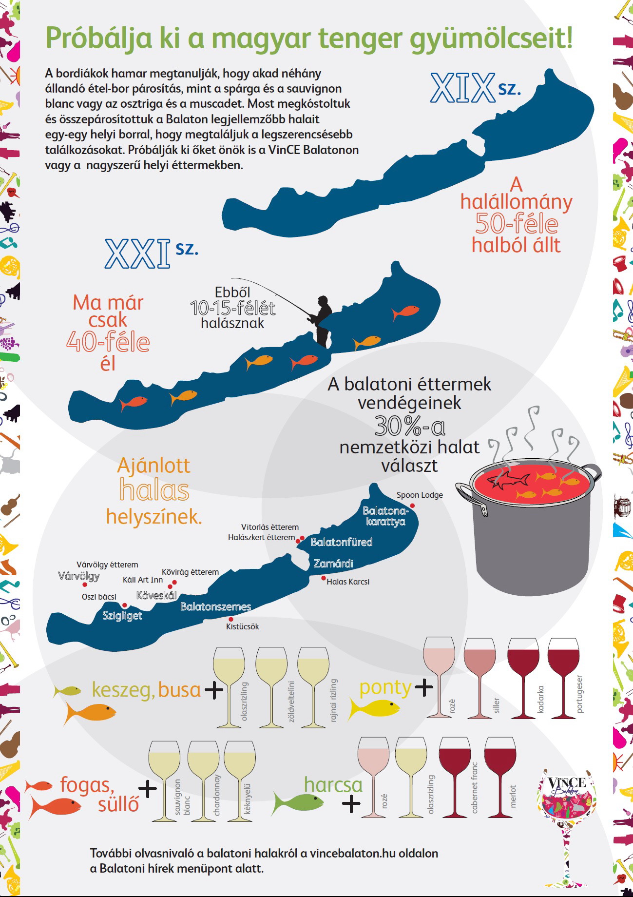 A Balaton 22 borvidékünk közül négynek, a Balatonfüred-Csopaki, a Balatonboglári, valamint a Badacsonyi és a Balatonfelvidéki borvidéknek is otthont ad, de a Zalai, más néven Balatonmelléki régió is ide köthető, így akár minden hosszú hétvégén újabb és újabb borokat fedezhetünk fel. E közben, bár az elmúlt években egyre csökken a halállomány a Balatonban és az ide látogatók harmada még mindig nemzetközi halakat választ az étlapról, a nemesebb halak fogyasztása emelkedő tendenciát mutat és a legnépszerűbb haléttermekben már arra is szép számmal találunk példát, hogyan találnak egymásra a helyi borok és fogások.”