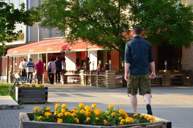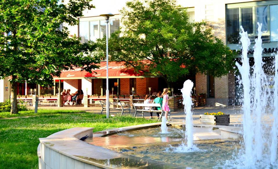 A Géniusz Étterem, amúgy egy kellemes, csendes kecskeméti park szélén található. A teraszról a csökőkutat is nézhetjük, és fordítva, a szökőkúttól a Géniusz Éttermet, de azért sokáig mégsem érdemes nézegetni, dolgunk van, menjünk be, üljünk le, s kóstoljunk valamit.