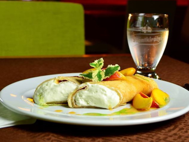 A délután során kóstoltam Újházy-tyúkhúslevest (átlagon felüli volt) és természetesen a képen is szereplő, tényleg finom palacsintát, a „bredpitteset”.