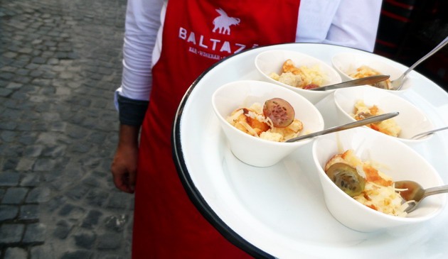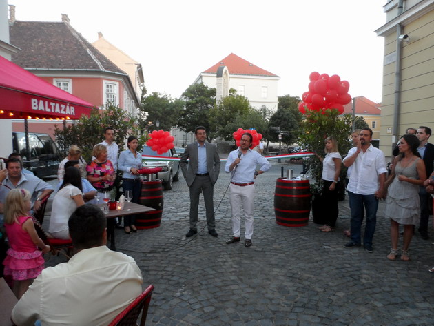 „Hangulatos macskaköves terasz, vidám, játékos légkör, vagány design, gourmet street food, faszén grill. Őszinte, autentikus alapanyagok és főleg a Kárpát Medence legizgalmasabb borai. Borbárunkban és Terra Hungarica borszaküzletünkben több mint 300 tétel található a legjelentősebb autentikus borok közül.” – foglalta össze a Baltazár gasztronómiai kínálatát Zsidai Zoltán Roy tulajdonos.”