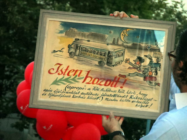 - A megnyitó alkalmából az I. kerület polgármestere, Nagy Gábor Tamás emlékül egy rajzot adott át Zsidai Roynak. A szocialista Fővárosi Autóbusz Községi Vállalat (FAKV) amúgy 1949. és 1968. között (a BKV egyik elődjeként) működött.