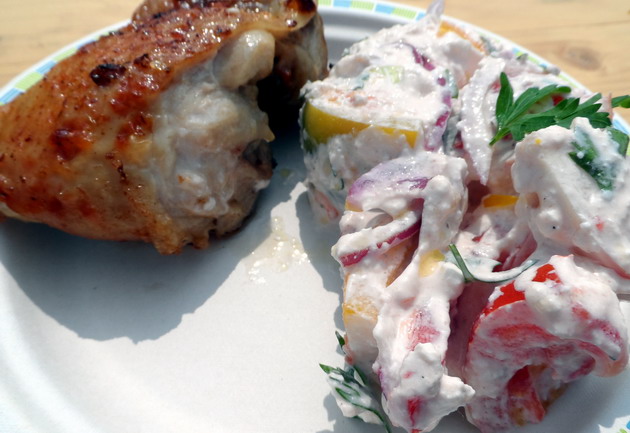 - Tanyasi vasalt csirkecomb filé, juhtúrós friss salátával