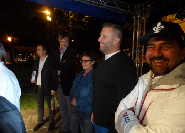 A színpadon kihirdetjük a kategóriagyőzteseket (Szürkemarha Vigadalom, 2013). A képen a zsűri következő tagjai láthatók: Pindroch Csaba, Gyimesi Zsuzsanna, Jókuti András és Gianni Annoni
