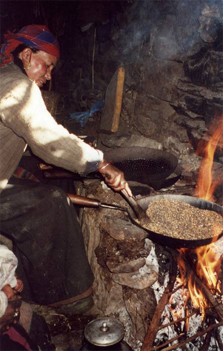 - Tsampa – pörkölt árpaliszt, tea/jaktej/sós tea, jakvaj