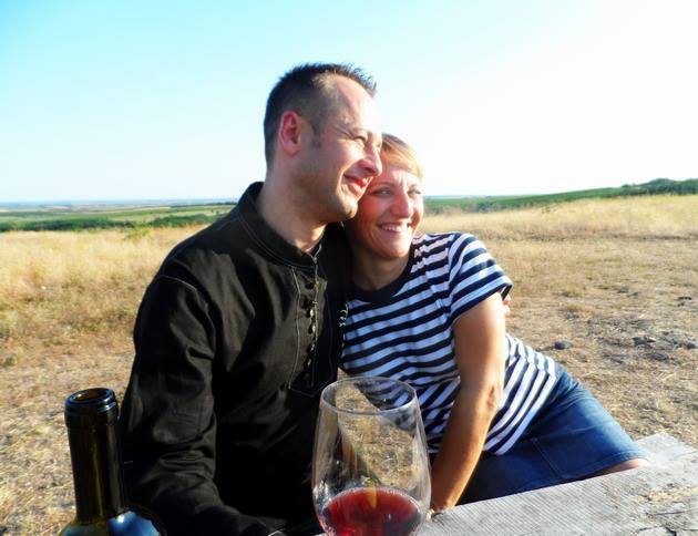 A látogatás végén még felmentünk a pince feletti dombra Attilával, Erzsébettel és egy palack Pinot noir-ral.